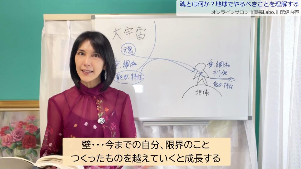 魂が肉体に入り、地球での経験を通じて成長する。